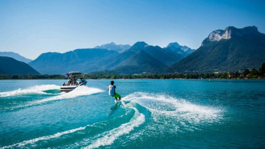 Wakeboarding: inspired by surfing and snowboarding, the rider uses the boat’s wave to perform tricks.